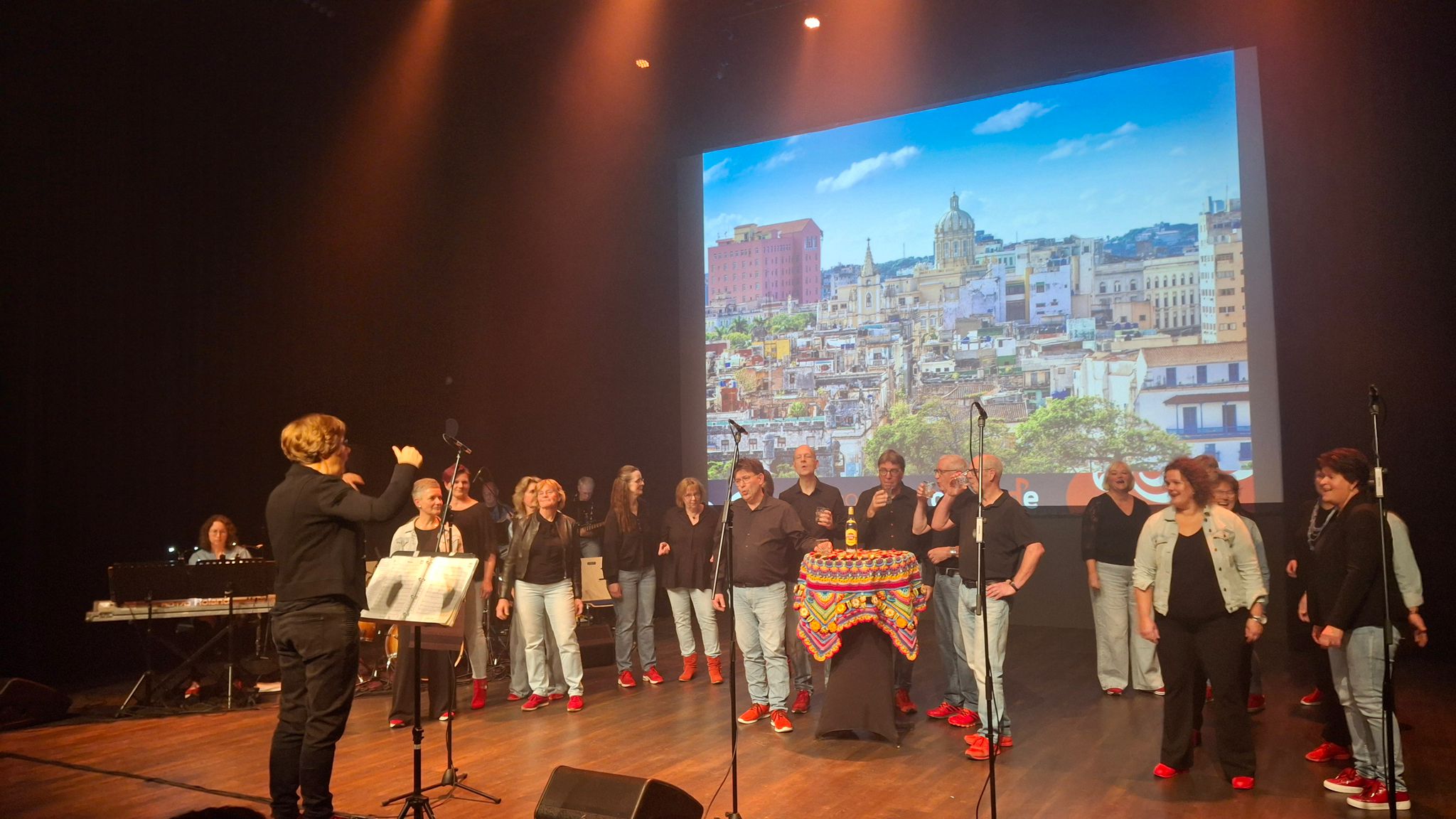 Aan het einde ging het dak eraf toen we met 2 koren samen ‘We go together’ uit Grease zongen. Na een staande ovatie en een gezellige after-borrel konden we terugkijken op een geslaagde avond!